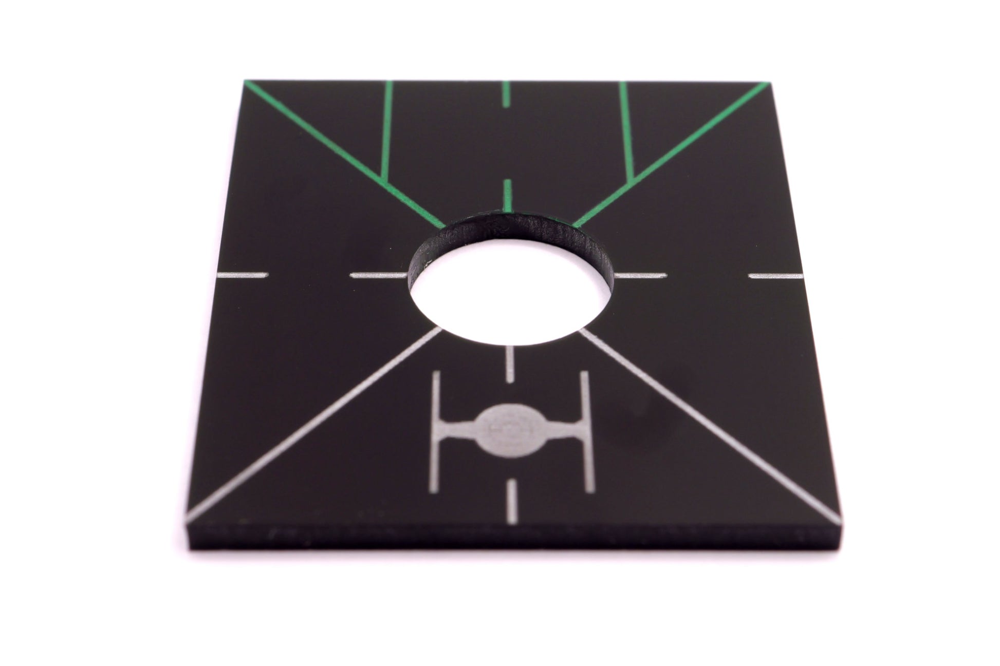 Products we produce from hard acrylic that are designed to mate with the official bases for X-wing (or other similar games) have known compatibility issues with the official components due to variations with manufacturing tolerances of the original components. Some official bases will accept these components snugly, while others may be too tight for them to slot together, and others still may be far too loose. Original bases also have a tendency to shrink and bow over time, which leads ship tokens to sit proud at it's edges in some cases. All of these issues can be remedied with some basic hobby tools, instructions are included on this site here.